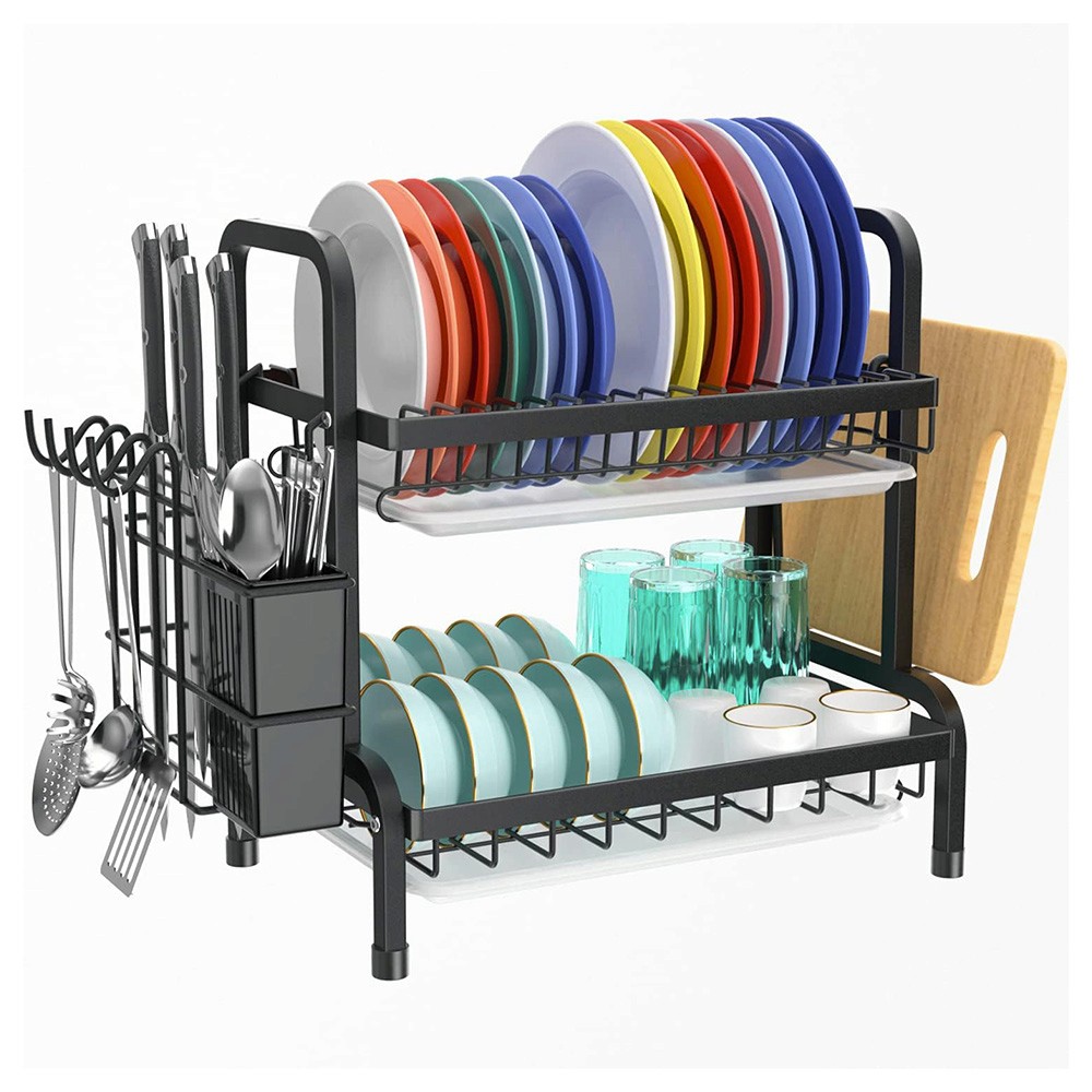 · Este escurridor te permite escurrir y organizar tu vajilla ahorrando espacio gracias a su diseño de doble nivel, ambos con bandeja anti-goteo.