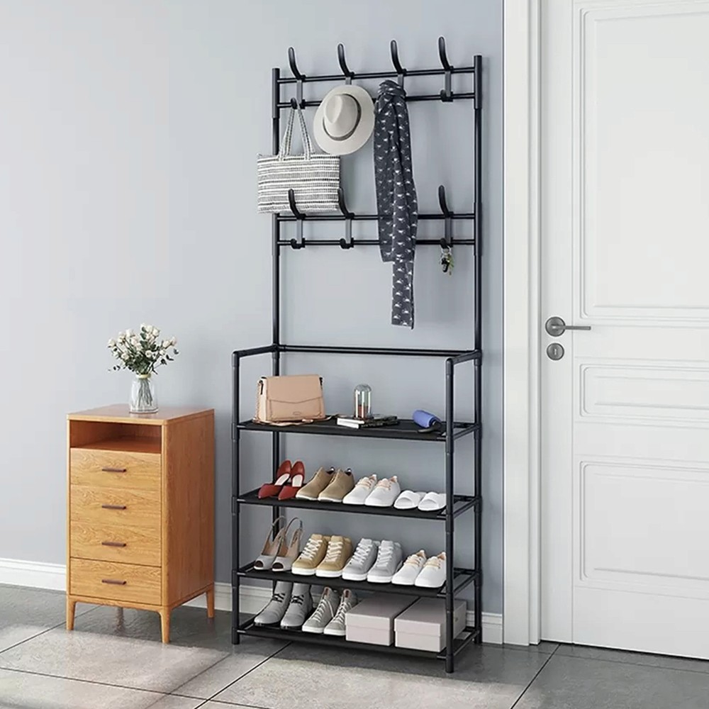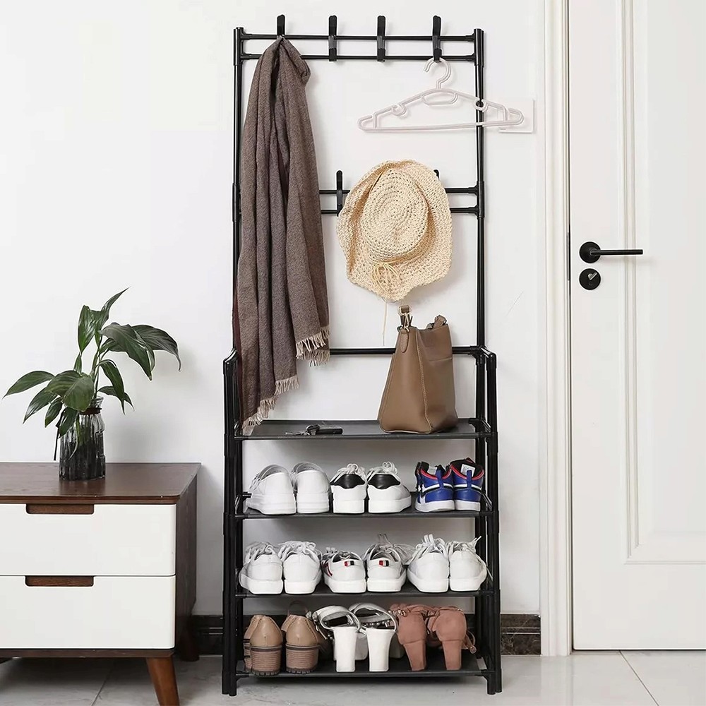 Diseño 2 en 1: Organizador para zapatos y Perchero de pie